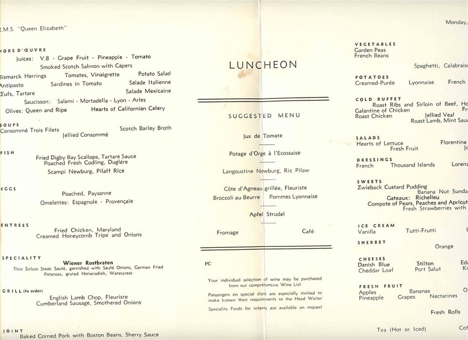 Cunard Line Menu RMS Queen Elizabeth and similar items