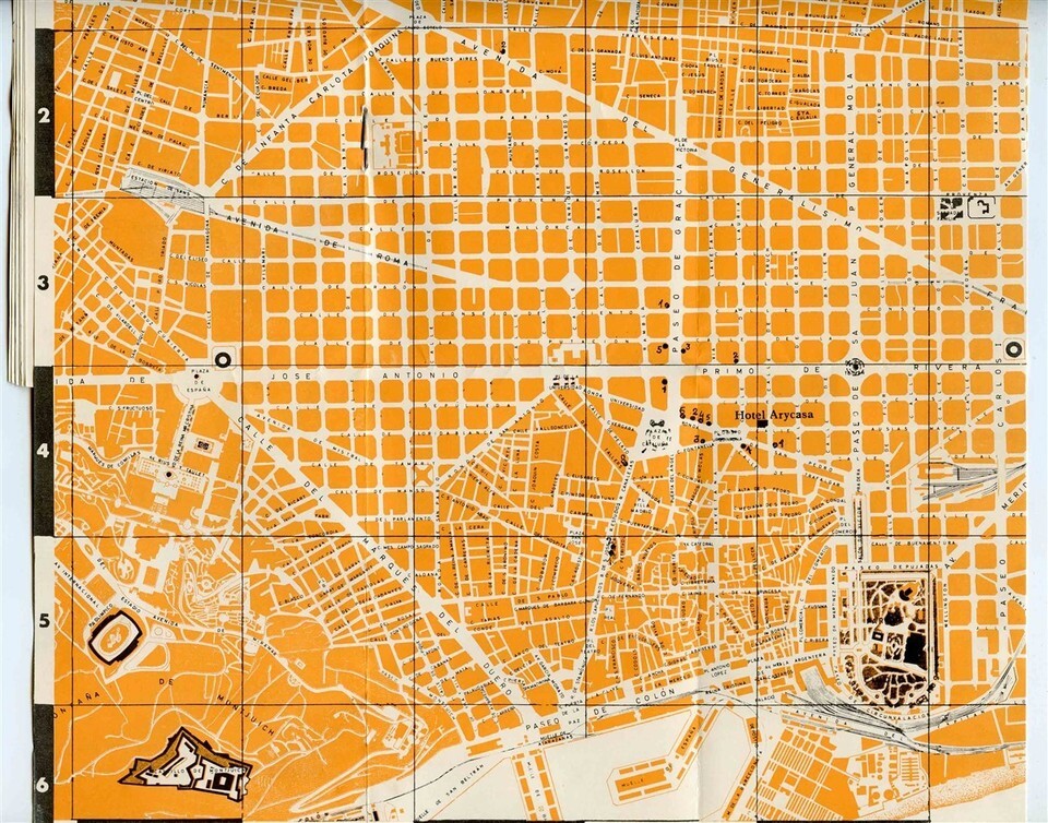 A 32 page booklet of hotel and tourist information, plus advertising and a fold out City map. Arycasa Hotel Guest Booklet with Maps of Barcelona Spain .