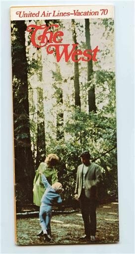 A full color illustrated 16 page double fold brochure, circa 1970's. United Air Lines Vacations 70, The West. Includes Los Angeles, Disneyland, San Diego, Palm Springs, Yosemite, San Francisco, Reno ,Lake Tahoe, Grand Canyon, Las Vegas and more. . Lots of Tours, itineraries, tariffs and more.
