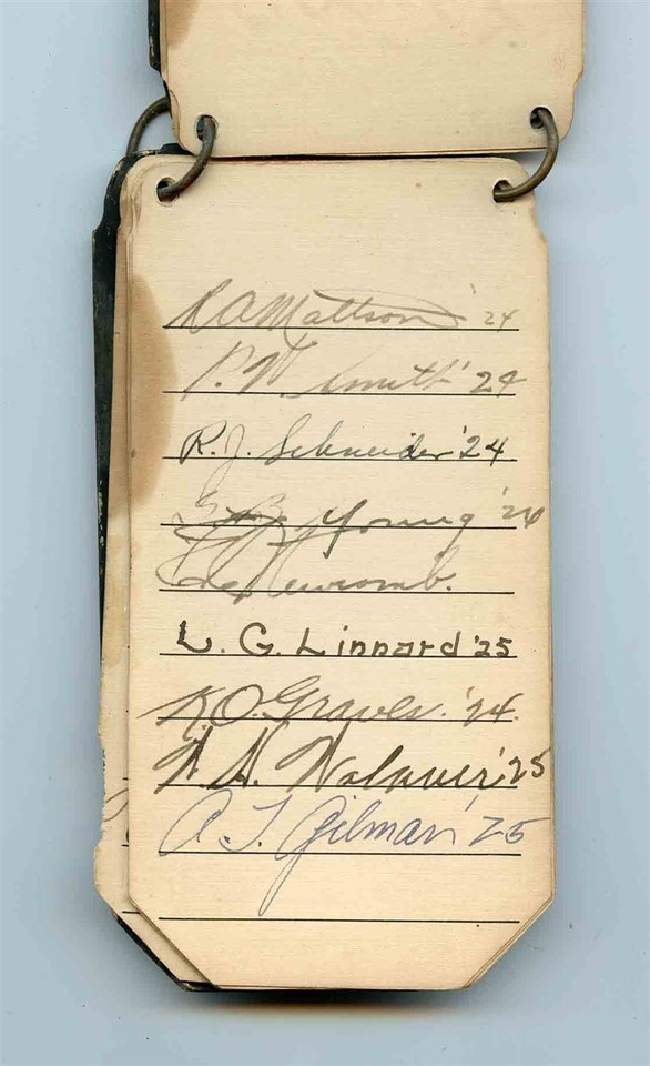 Scarab Wooden Autograph Book with scarab attached to cover. From the Karnak Temple of the Shrine from 1924 in Montreal Canada. Has signatures of many Members and Faculty. Measures about 2 1/2" x 4 3/4" when closed.
