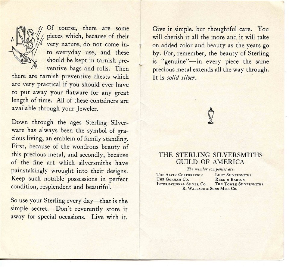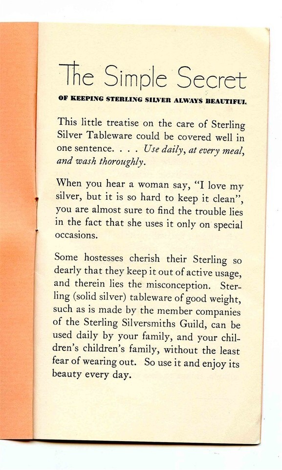 The Simple Secret of Keeping Sterling Silver Always Beautiful Brochure 1930's