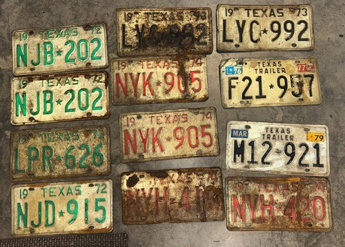 ONE Original Vintage flat Texas Classic License Plate DVW 4873 Has The Lone Star State printed on lower edge. and lone star in the upper left corner
