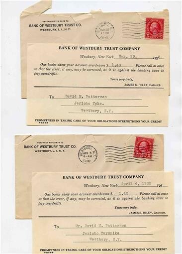 2 Overdrawn Account Notices Bank of Westbury and 50 similar items