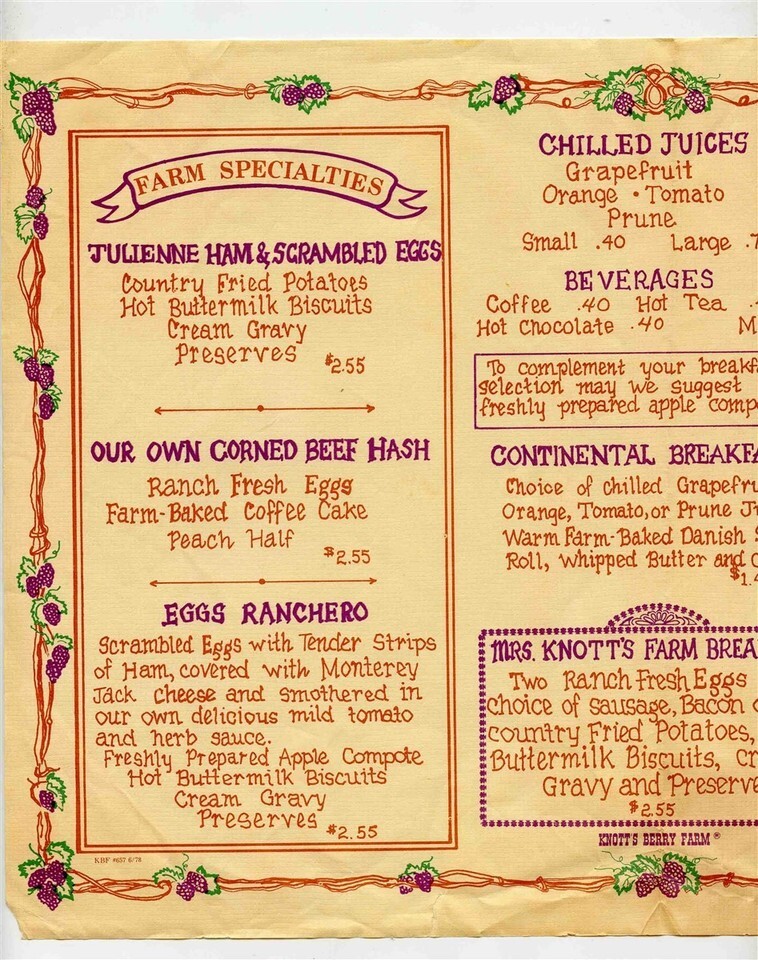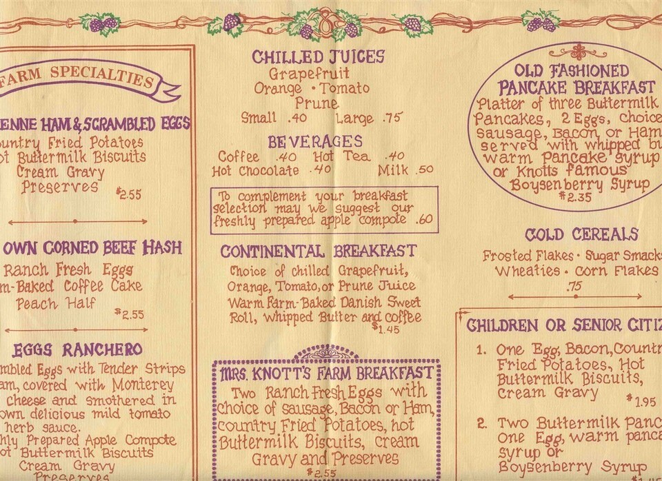 4 Knott's Berry Farm Ghost Town Steak House Chicken Dinner Breakfast Menus
