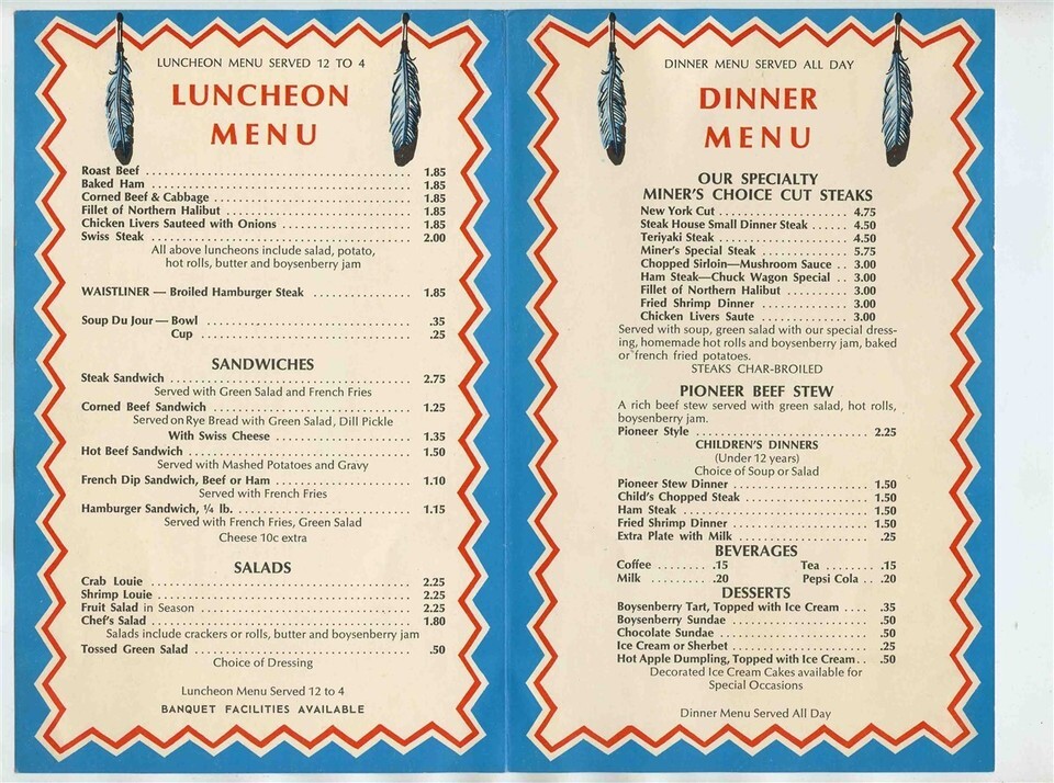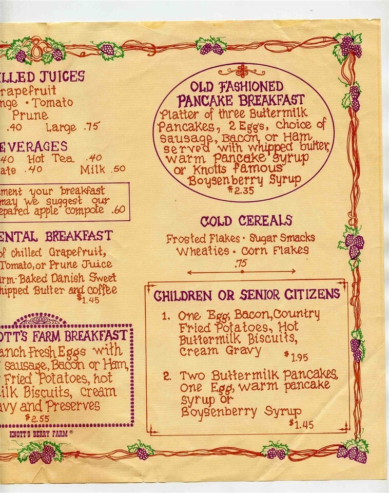4 Knott's Berry Farm Ghost Town Steak House & Chicken Dinner & Breakfast Menus