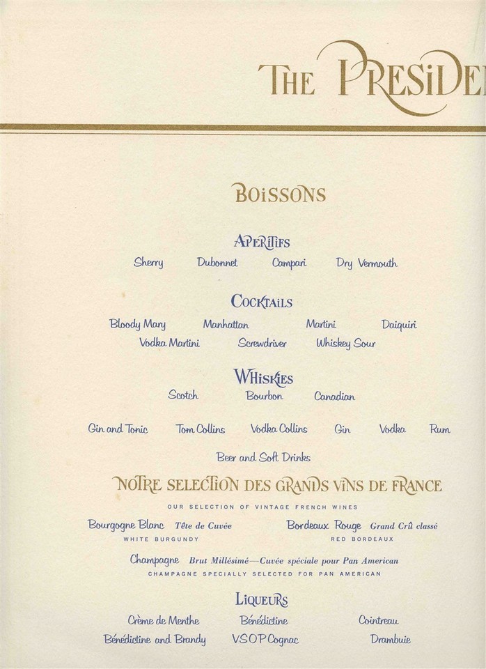 Pan American Amerique Du Nord Menu President Special Maxims 1964
