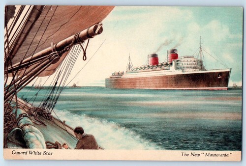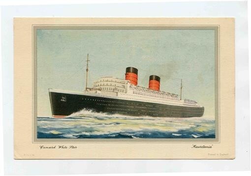 A 2 sided single page, 1950 Cunard White Star R M S Mauretania Abstract of Log New York to Southampton. From an July 13, 1950 sailing from New York to Southampton via Cobh and Le Havre. On one side is the abstract of log and on the other side is a color image of the R M S Mauretania