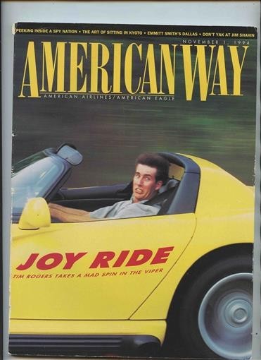 The November 1, 1994 issue of The American Way, the in-flight magazine of American Airlines. Has 190 pages with many interesting articles like an illustrated one on Joy Ride, Tim Rogers Takes a MAd Spin in the Viper. In fine condition. Has many interesting articles, photos, ads and more