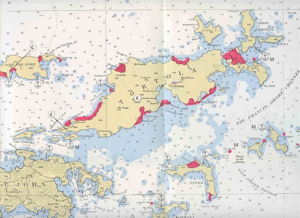 The Moorings Virgin Islands Map With Inset maps of Road Harbor and Gorda Sound