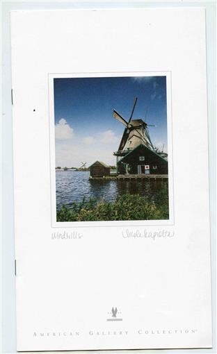 From the American Gallery Collection. American Airlines Business Class Menu With cover image and interior information on the Windmills . 8 interior pages with shop duty free on the inside back over. Measures about 6 1/2" x 11" when closed. Dated 1998.