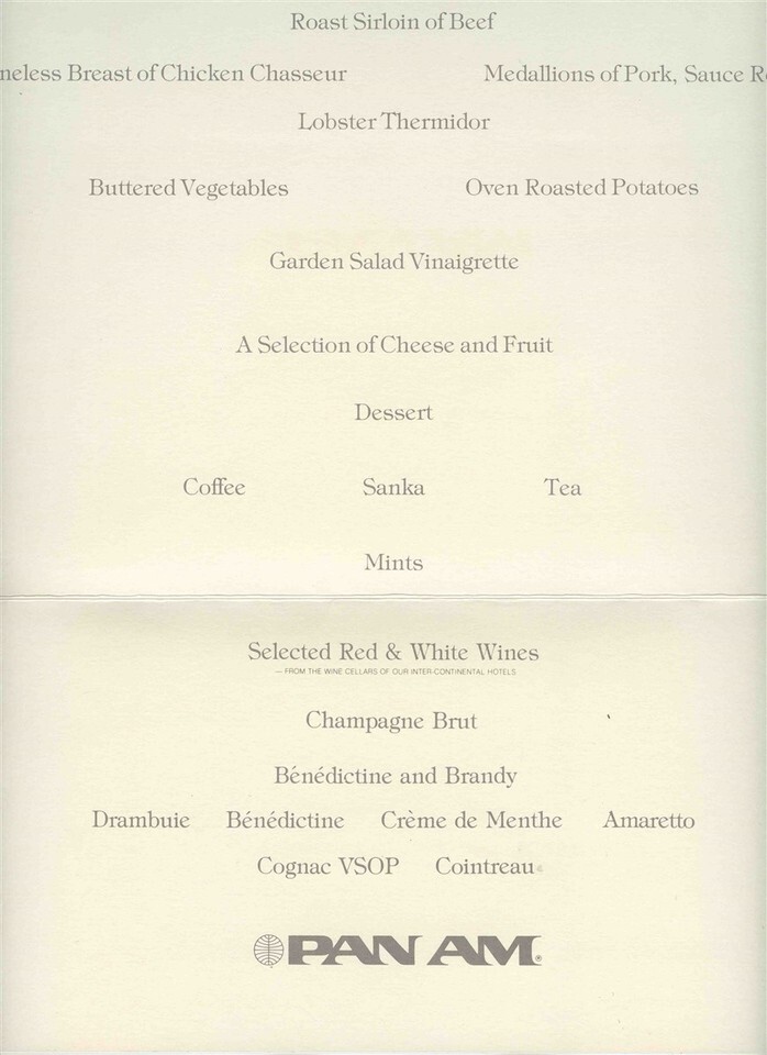 Pan Am Premiere Class Transatlantic Menu and similar items
