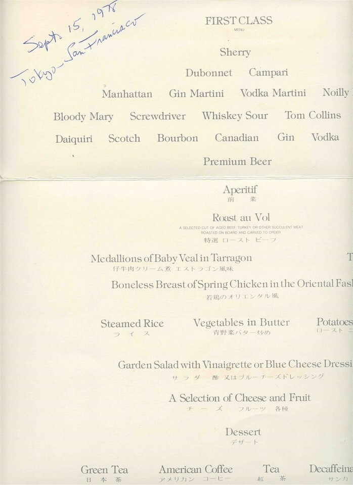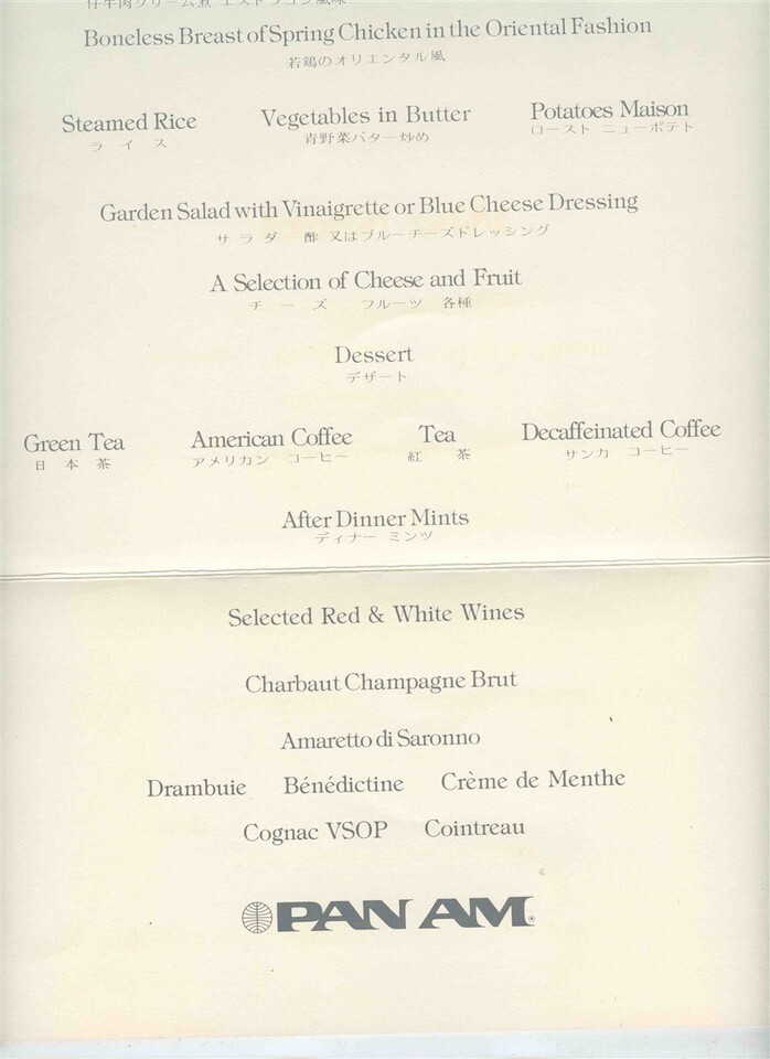 Pan Am Premiere Class Transatlantic Menu and similar items