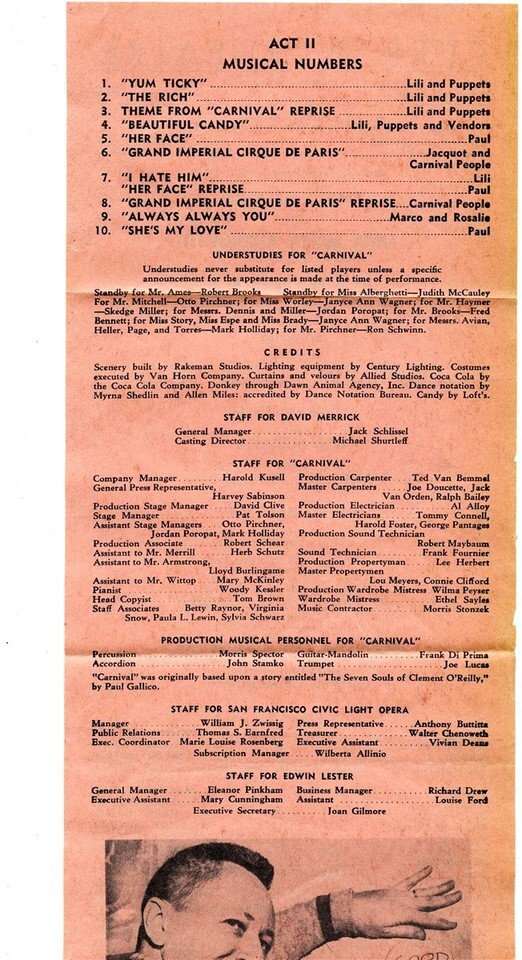 Carnival Flyer Anna Maria Alberghetti Curran Theatre San Francisco 1962