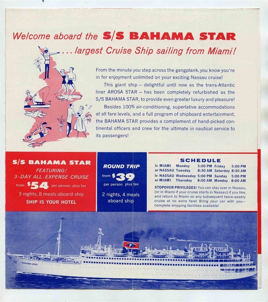 Cruise from Miami on S/S Bahama Star 1960's and similar items