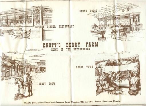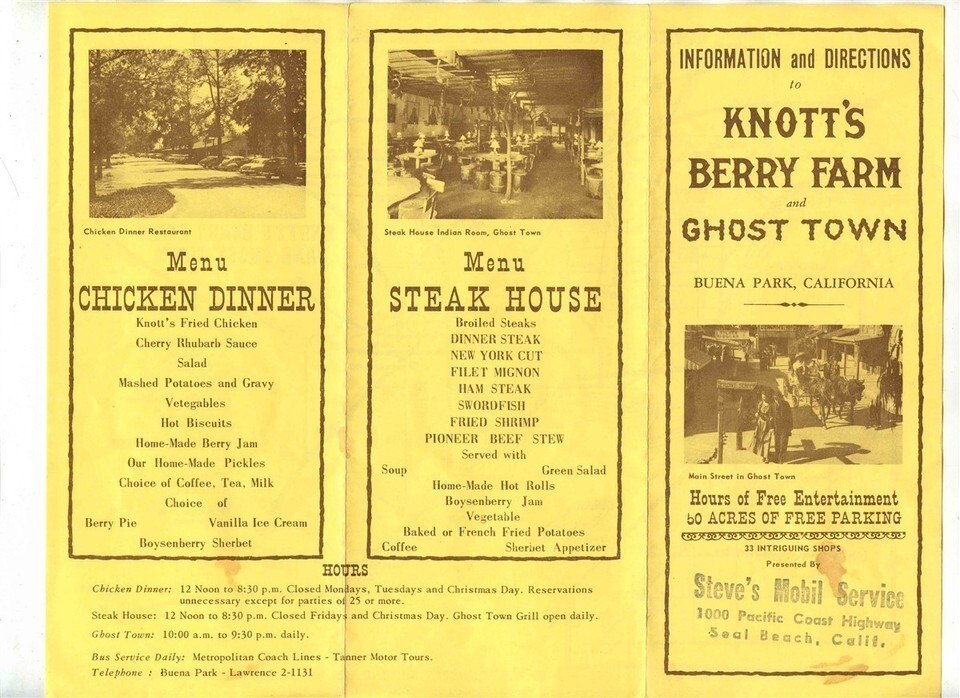 Knotts Berry Farm Placemat & Chicken Dinner & Steak House Menu Brochure Map