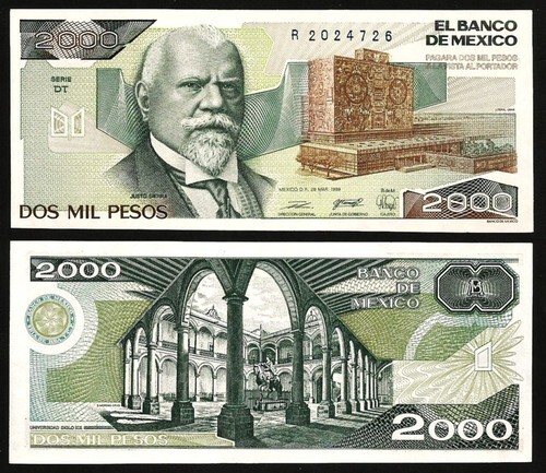 Mexico 500 Peso Banknote, Will Vary By Year, Series VF+ Random Picked Ship # 27
