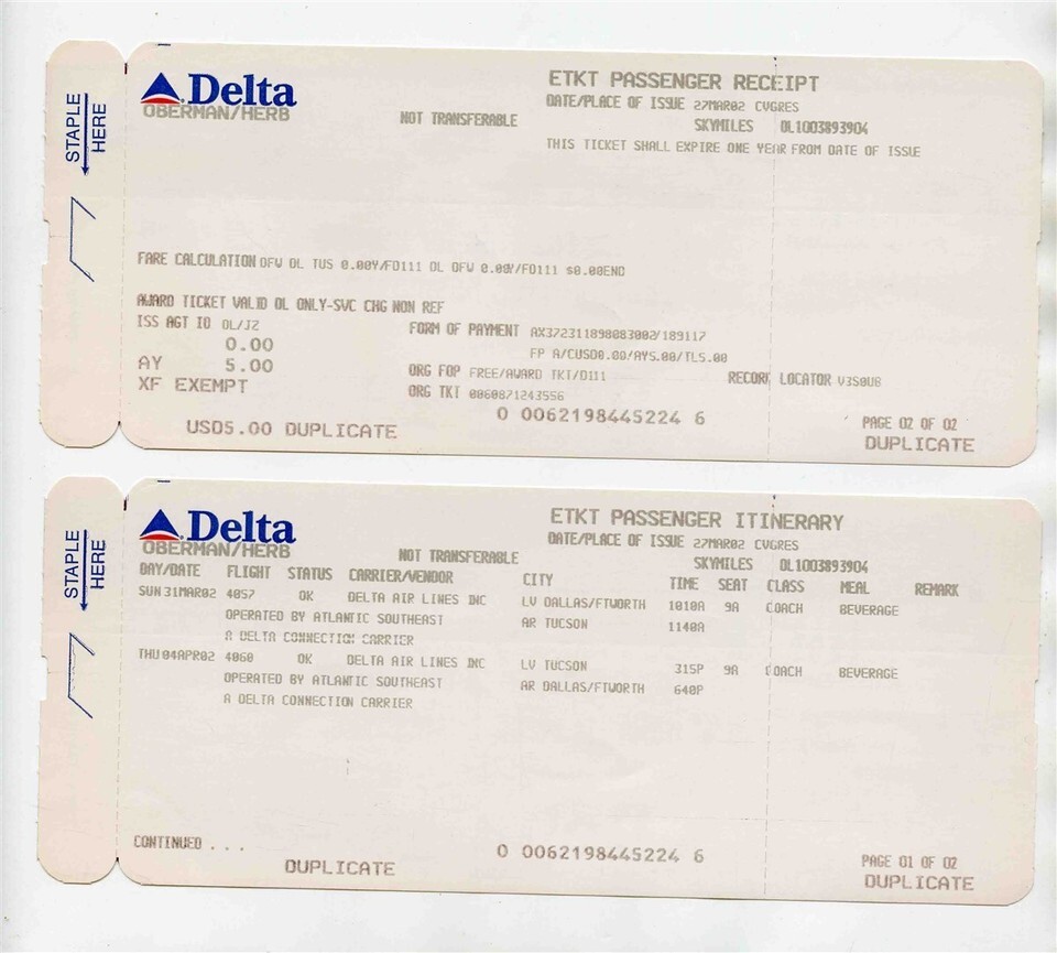 Delta Airlines Ticket Jacket Receipt and 50 similar items