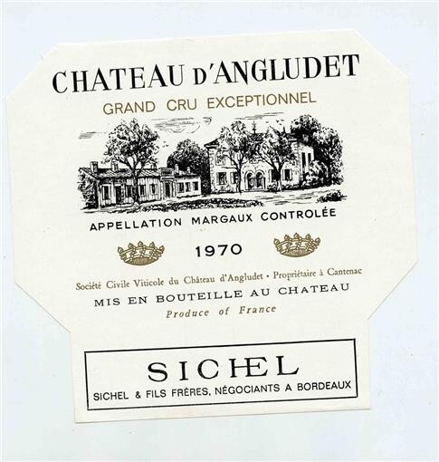 Chateau d'Angludet Grand cru Exceptionnel 1970 Wine Label