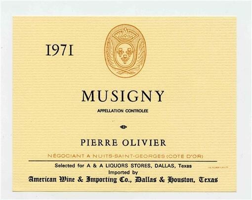 Pierre Olivier 1971 Musigny Wine Label and 26 similar items