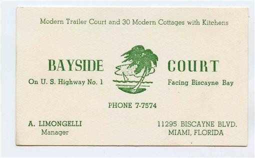 Bay Side Court Business Card US Highway 1 Biscayne Blvd Miami Florida