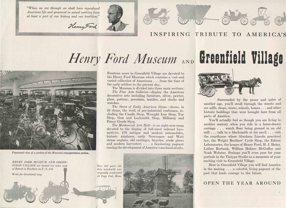 Henry Ford Museum Greenfield Village Dearborn Michigan Brochure