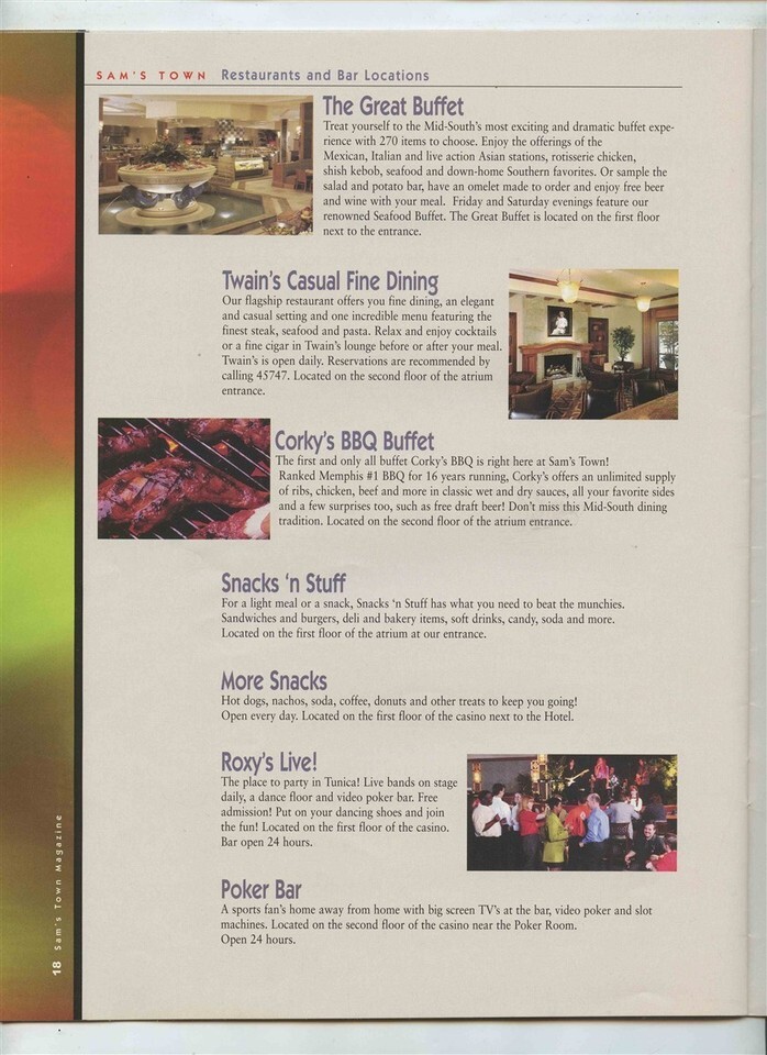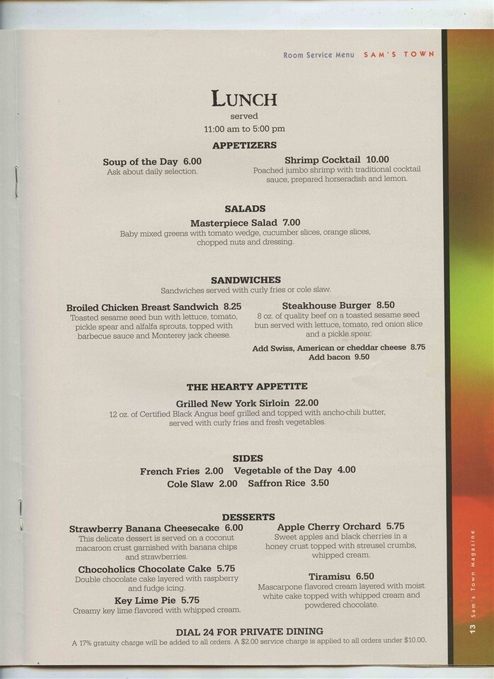 Sam's Town Casino Tunica Mississippi In Room Magazine Room Service Menu
