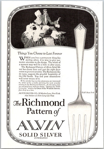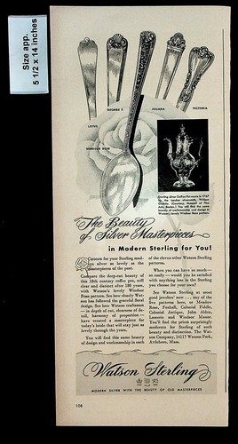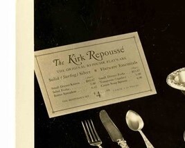 A 7" x 9 3/4" black and white photo with Photographers stamp on the back. Kirk America's Oldest Silversmiths Sterling Silver Repousse Photo with Price List in the photo. Circa 1937