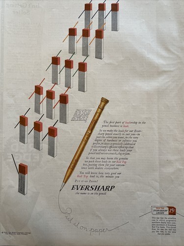An Esterbrook Pen Company Magazine Ad from 1953. With a Choice of Points for Every Writer. Measures about 7" x 10". Has a Bolex Camera ad on the back.