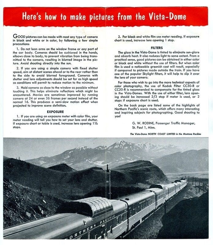 Northern Pacific Railway Vista Dome Brochure Shooting Tips for Camera Fans 1957