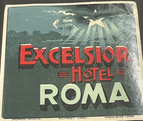 A original luggage ( baggage ) label in near mint to mint condition. This label is 3 3/4" x 3 3/4". Excelsior Hotel LILLI Luggage Label Perugia Italy