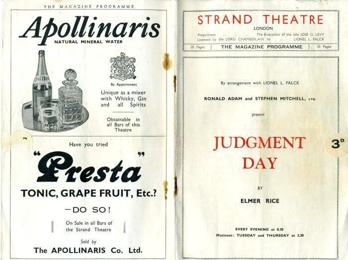 Judgement Day Magazine Programme Strand Theatre London 1937