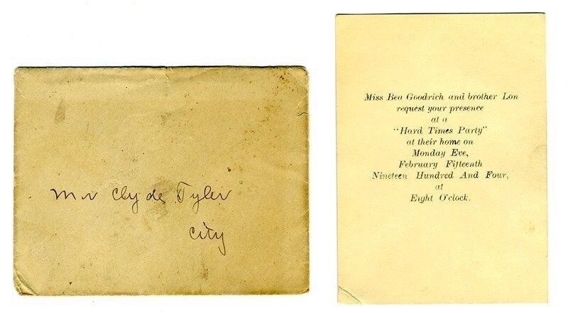1904 Invitation to HARD TIMES Party Bea and Lon Goodrich