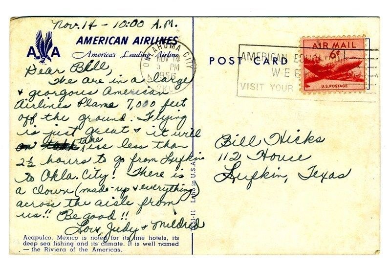 Mailed from Oklahoma City in 1956. An American Airlines postcard with a view of Acapulco, Mexico.
