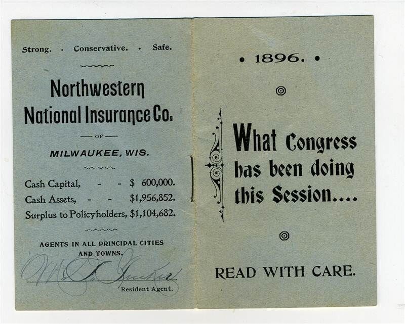 1896 What CONGRESS Has Been Doing This Session Northwestern National Insurance