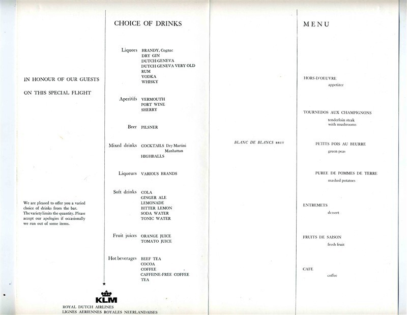 A special 4 page KLM Menu. From a KLM flight in 1973 for the Memphis Orchestral Society from Memphis to Amsterdam. Measures about 5" x 10" when closed.