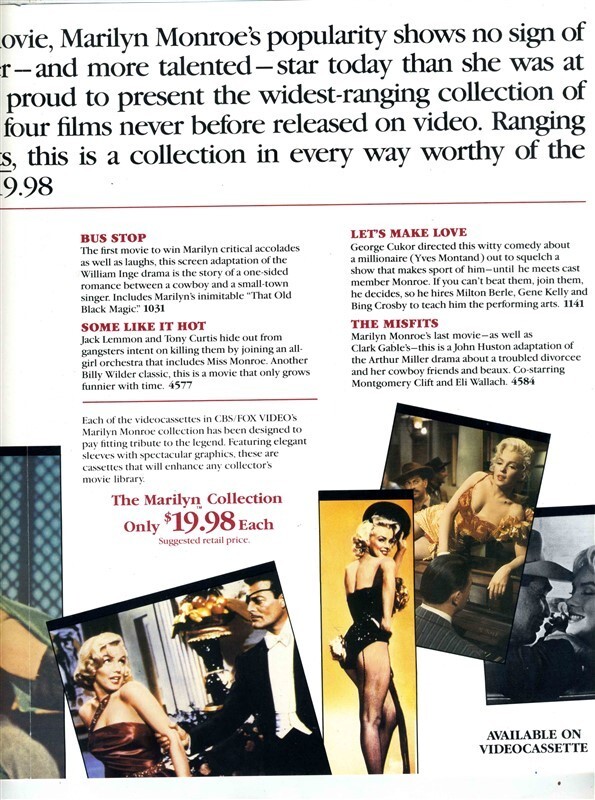 Marilyn Monroe Brochure Videos Posters Mug Book 1987 CBS FOX Video