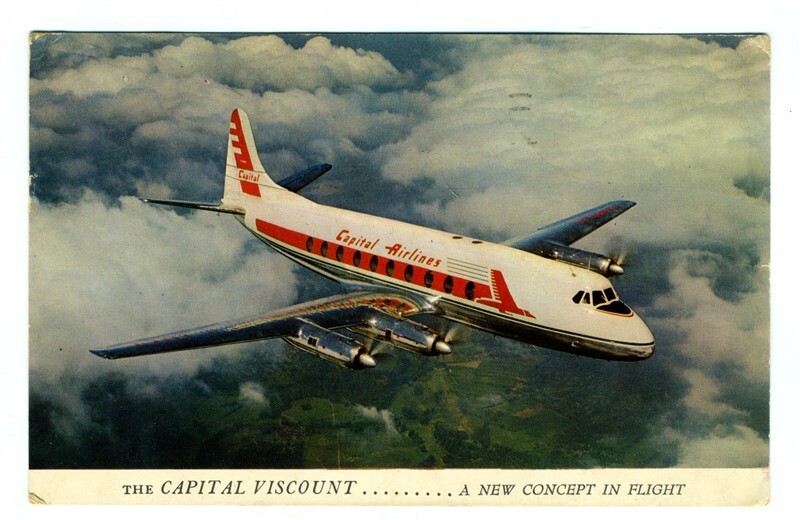 Mailed in 1957. A Capital Airlines Postcard The Capital Viscount In Flight A New Concept in Flying