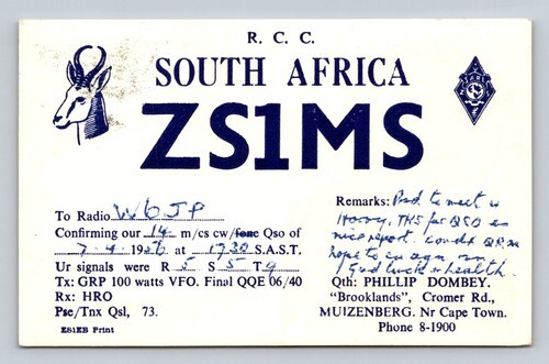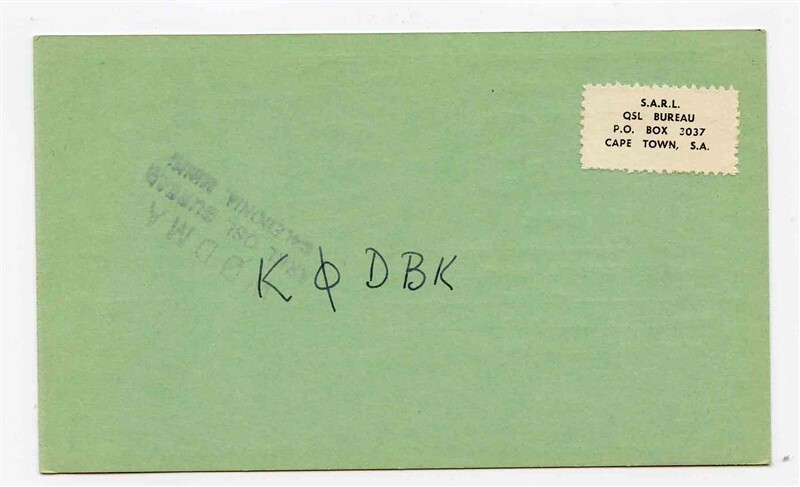 ZS6HM 1958 QSL Card Stellenbosch South Africa
