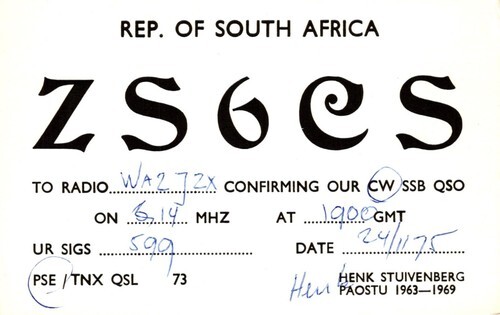 A ZS6HM 1958 QSL Card from Stellenbosch South Africa