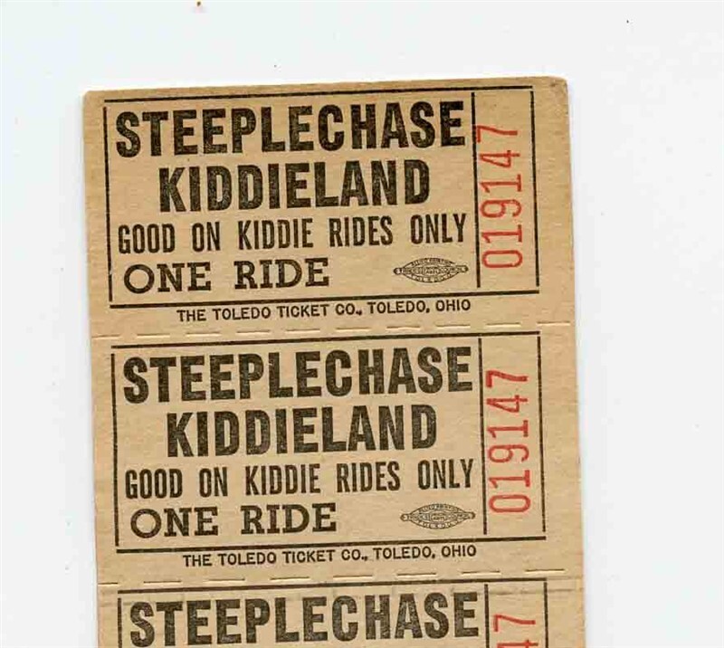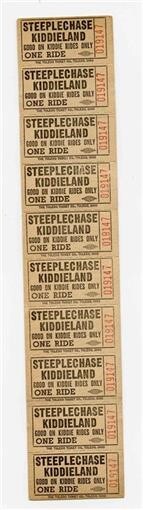 Steeplechase Park Kiddieland Coney Island New York Strip of 10 One Ride Tickets