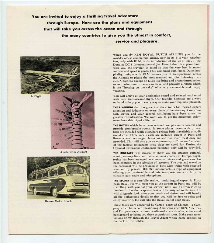 KLM Royal Dutch Airlines Escorted Jet Tours to Europe Brochure 1960 DC-8