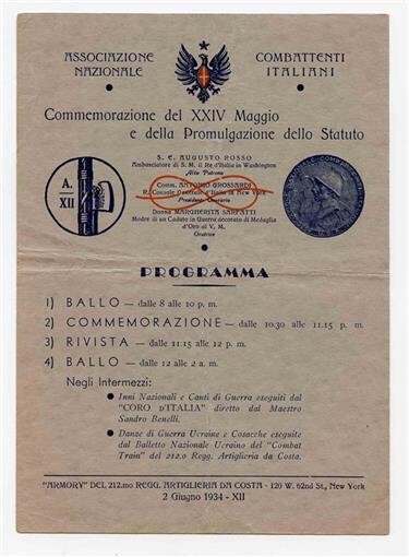 National Italian Fighters Association 1934 Program & Dance May 24 Commemoration