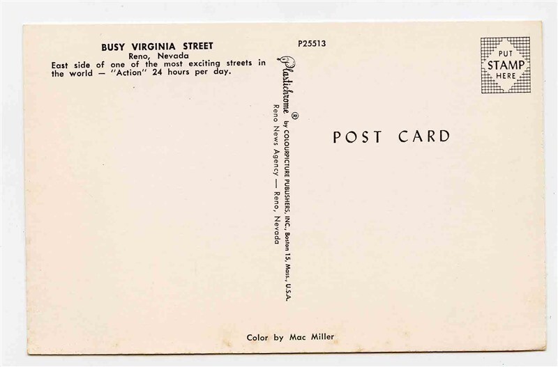 An unused postcard of Busy Virginia Street with Harolds Club Casino in Reno Nevada