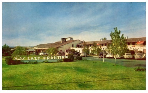 An unused the Hotel Last Frontier Casino Linen Postcard . Located on the strip in Las Vegas Nevada