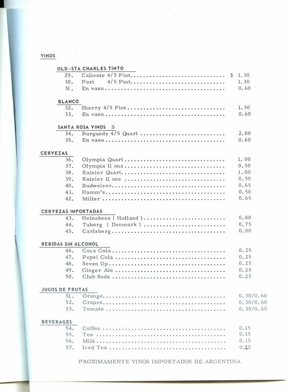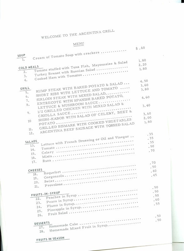 Argentina Grill Menu Century 21 Exposition Seattle Washington 1962