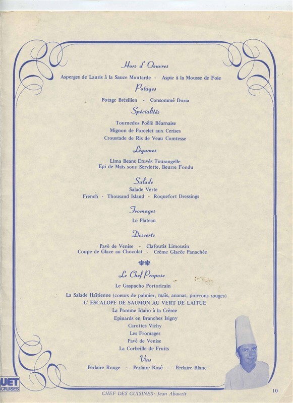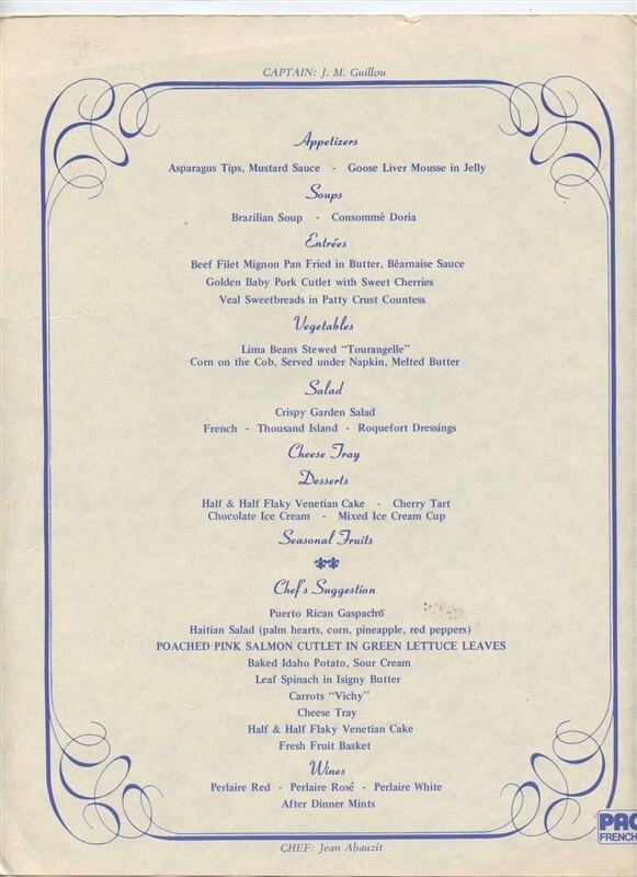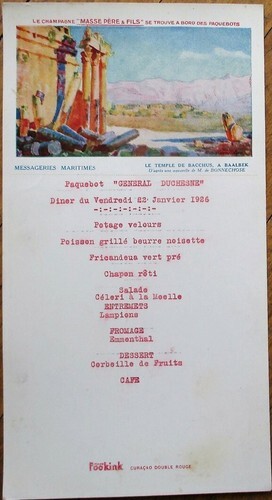 M V Mermoz Dinner Menu Paquet French Cruises and similar items