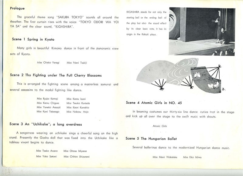 A souvenir program from the Kokusai Theater in Tokyo for the presentation of Tokyo Odori . Circa early 1950's. A fantasy of music and dance. In very good condition. In English. Illustrated. 12 large pages.