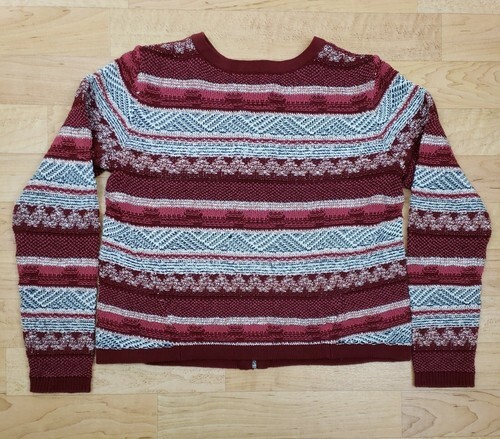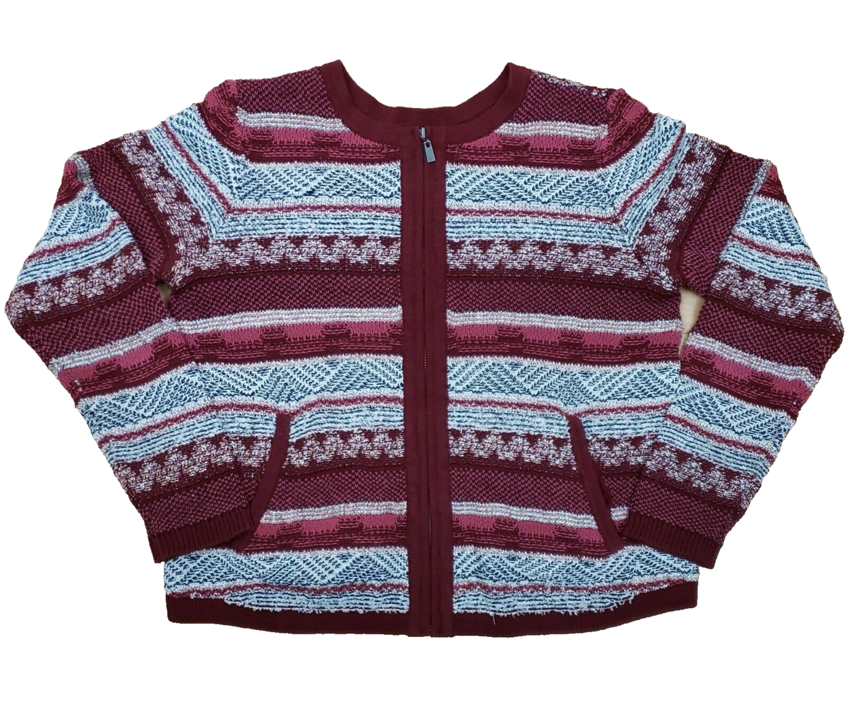 Loft Textured Sweater Womens Medium Brick Red Stripe Zip Cardigan Cotton Blend