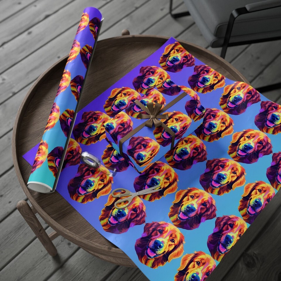 Colorful Golden Retriever Premium Eco Friendly Decorative Gift Wrapping Paper