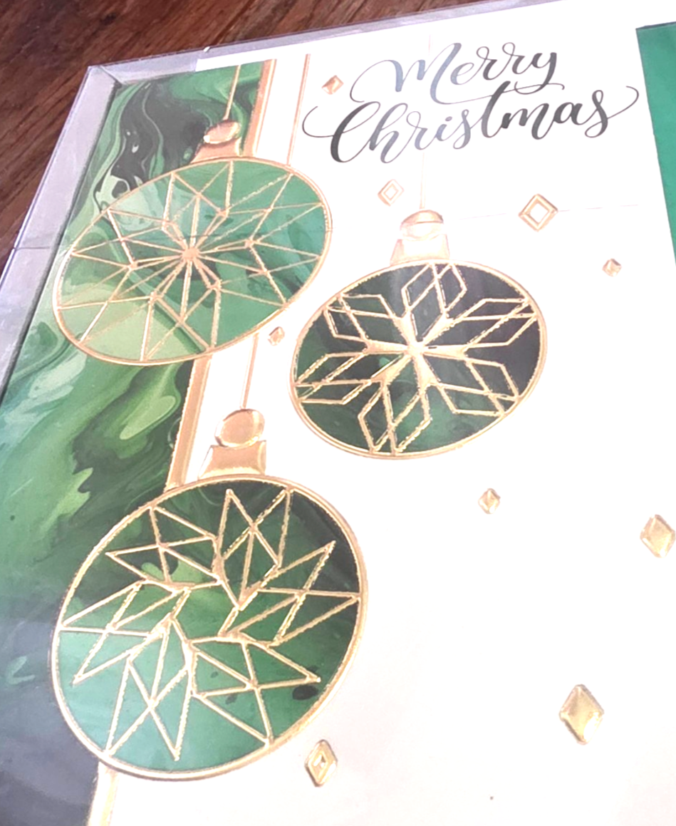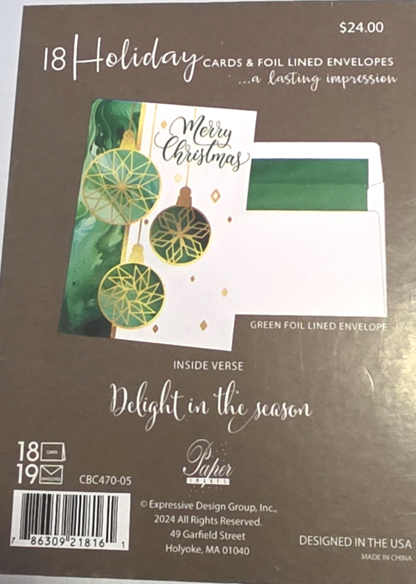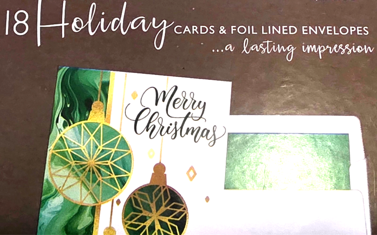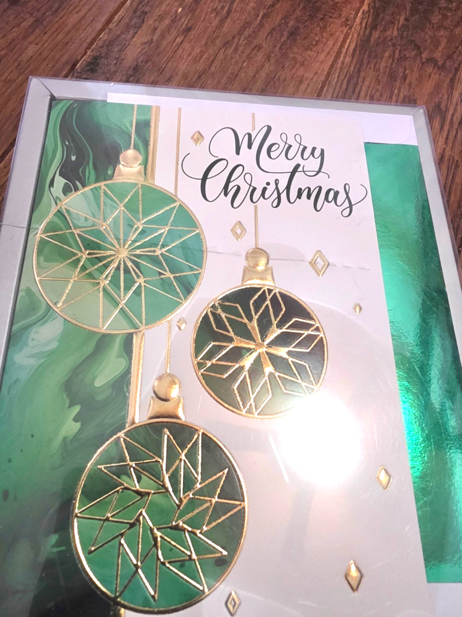 Green Gold Ornament Foil Christmas Cards set of 18 XSLF